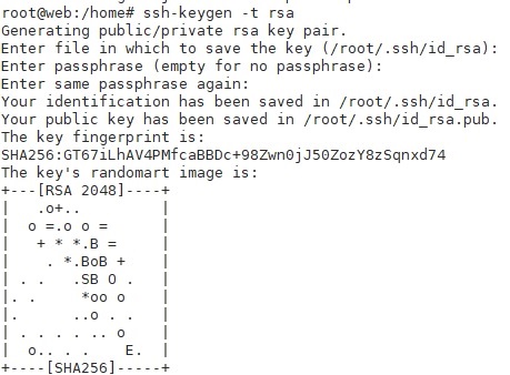 在显示完成后,在/root/.ssh/文件夹下,你将看到id_rsa和id_rsa.pub两个文件,id_rsa是私钥,下载下来并妥善保存,id_rsa.pub是公钥,放在服务器上的。将id_rsa.pub写入到SSH的密钥文件中: