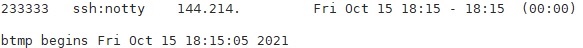 SSH的配置文件在/etc/ssh/sshd_config中,是一个纯文本文件,可以使用nano或者vim打开和编辑。打开文件后,在前几行就能看到#Port 22字样,这个代表使用了默认的22端口作为SSH连接使用。因为大家都在使用22端口,所以会有一些扫描机器使用弱密码不断尝试登录,使用lastb命令可以查看登录失败的记录,如下图。233333是尝试登录的账号,144.214.xxx.xxx是发起者的IP,最后面是尝试登录的时间。