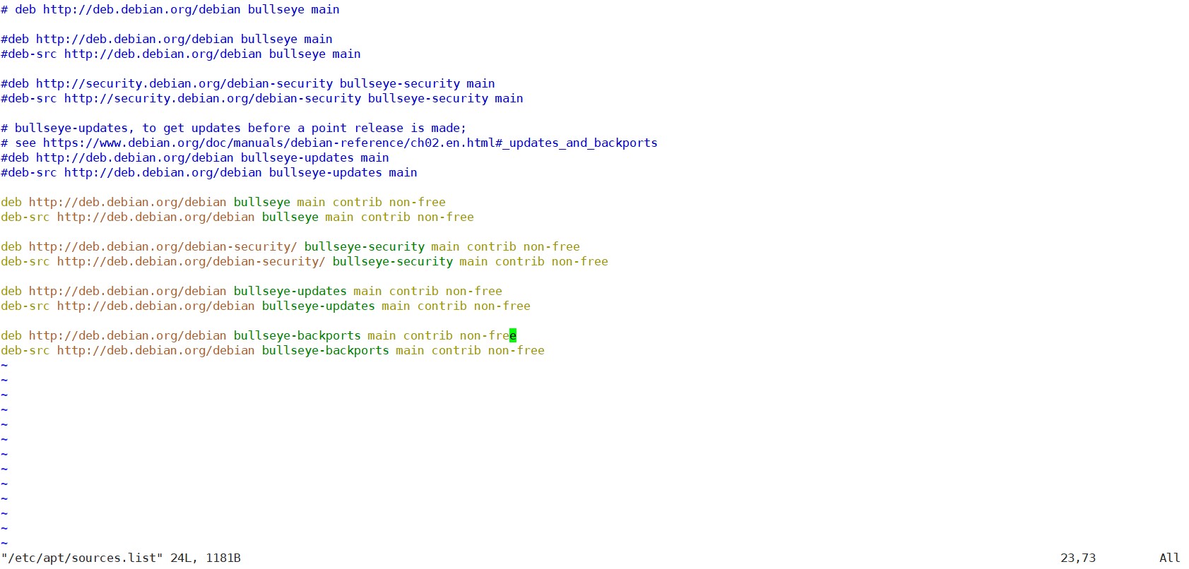 这里多提一句关于Debian 11的更新源内容,一般是以下6行。
